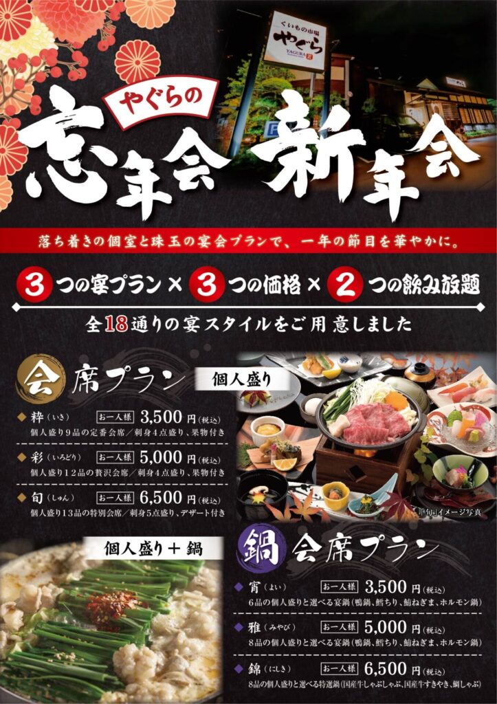 やぐらのコースはすべて税込表示。会費の計算がしやすく、幹事様にも安心してご利用いただけます。