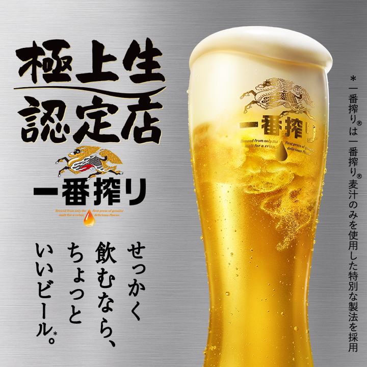 - KIRIN 極上一番搾り認定店のビールを心ゆくまで。