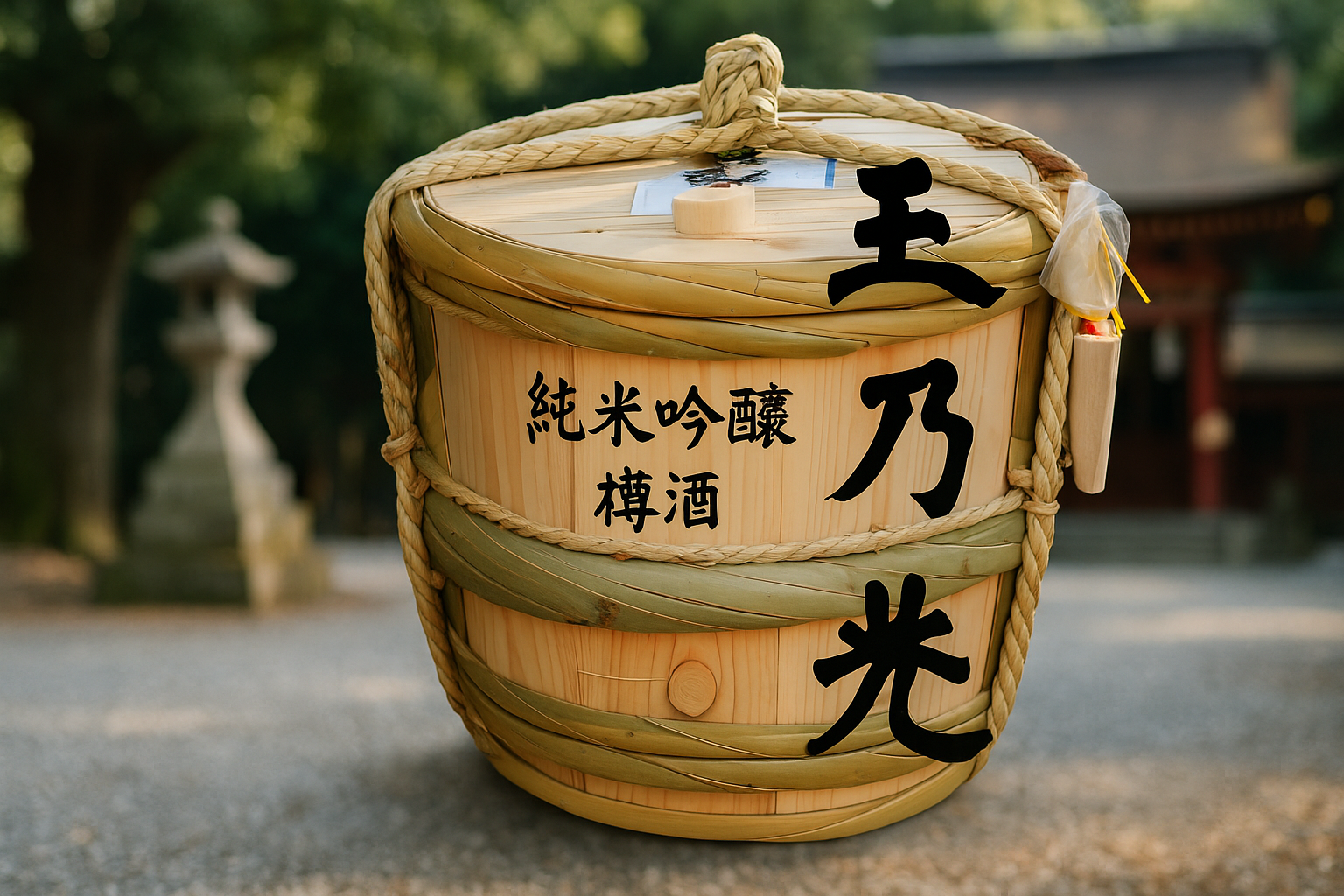 京都・伏見「玉乃光」の純米吟醸を杉樽に詰めた、香り高い祝い酒。