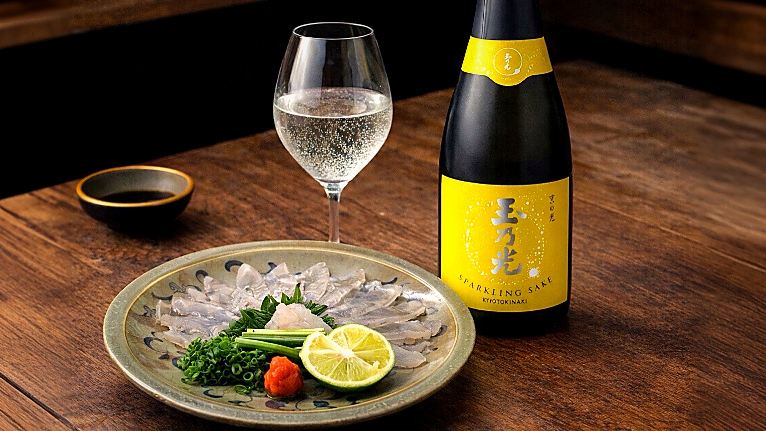 京都玉乃光「京の光」うすにごりスパークリング。食事の始まりに選びたい華やぎの1本。