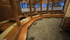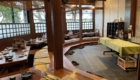 • 最大50名まで利用可能な12角形の吹き抜けホール。離れと掘り炬燵側の2構成となっており、木組みの高い天井と30m以上の大黒柱の開放感ある構造が特長。